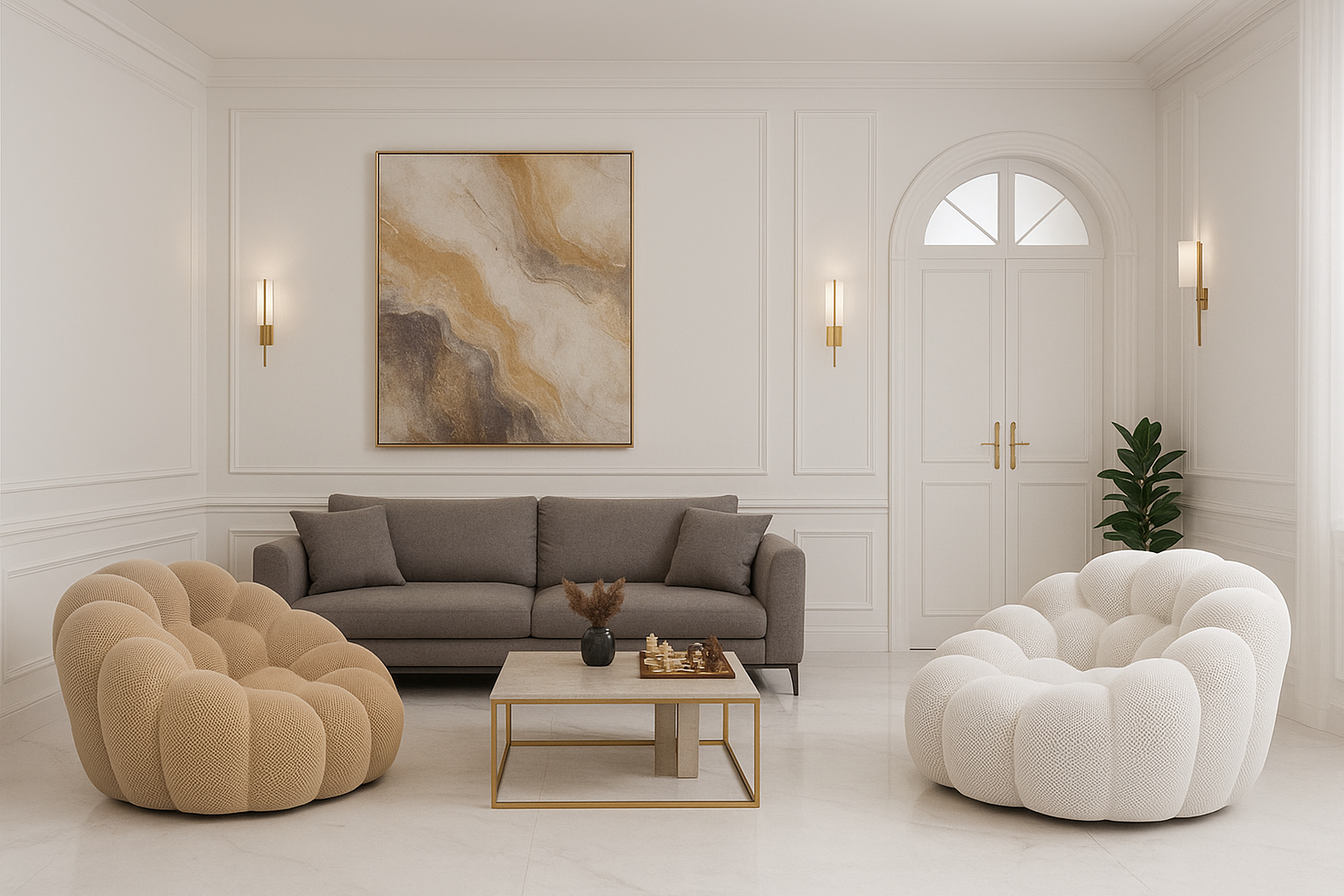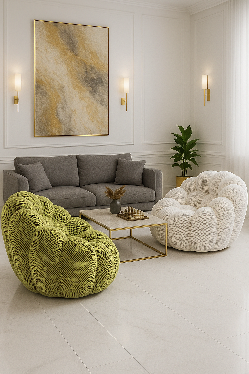 Imaginé par le designer visionnaire AM DESIGN, passionné par l’innovation et les technologies de pointe, le canapé Bubble incarne l’alliance parfaite entre créativité, confort et émotion.