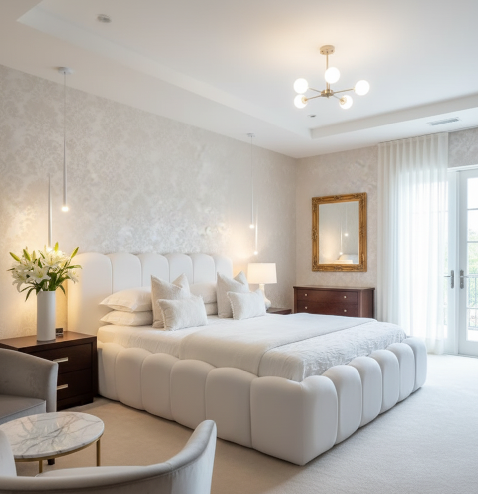 Habillé d'un Bouclette anti-taches somptueux et soyeux, le Lit Bubble insuffle une atmosphère de luxe et de douceur propice à la détente et au bien-être.