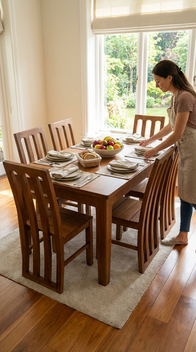 Avec son design sobre et sa finition bois naturel, cette table crée une ambiance conviviale et accueillante, idéale pour les repas en famille, les brunchs du week-end ou les soirées entre amis.