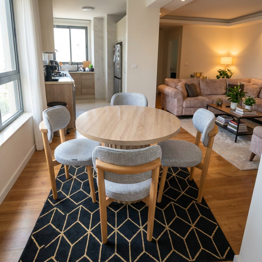 • Table : idéale pour coins repas, salles à manger et espaces restreints • Chaises : ergonomiques et pensées pour un confort prolongé